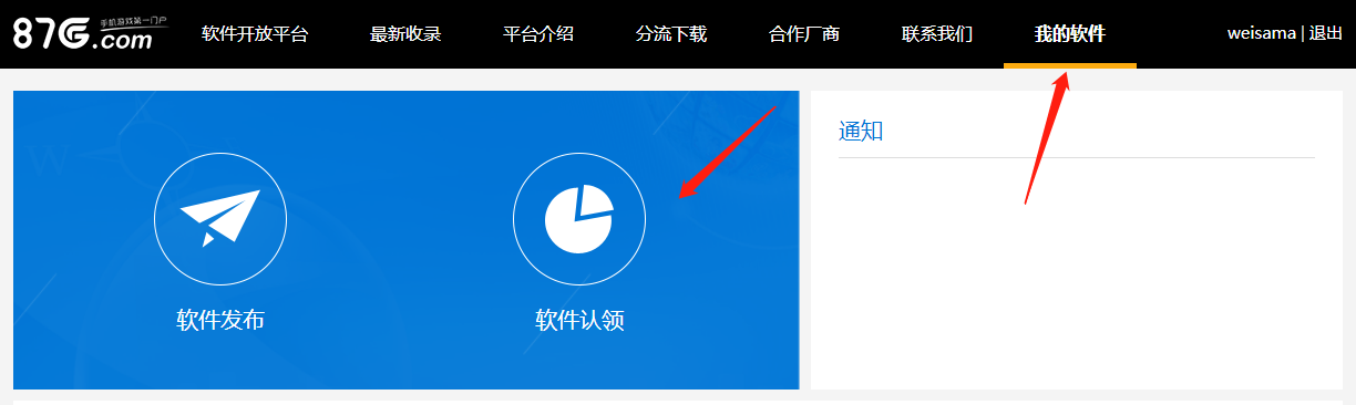 1、登录87G开放平台,然后点击“我的软件”,如果您知道自己家软件在我们站点的链接可以直接点击“软件认领”(图5)