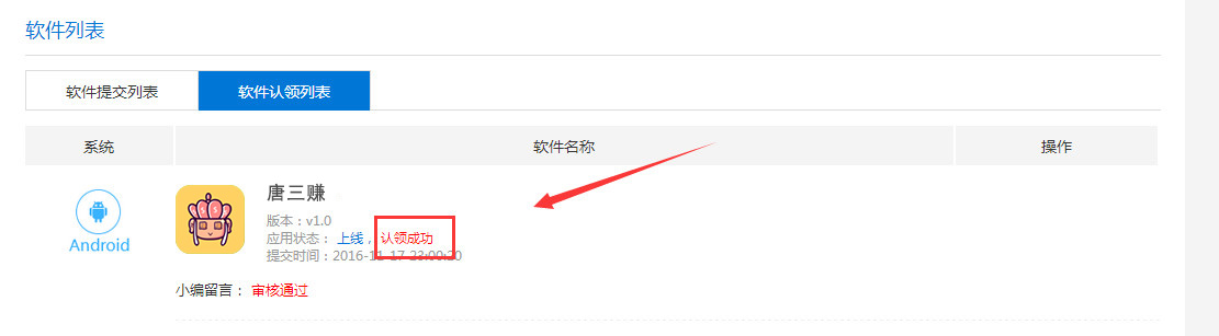 4、然后进入”软件认领列表”查看您认领软件的状态(图8)。